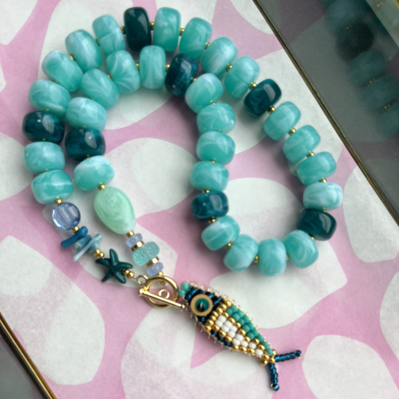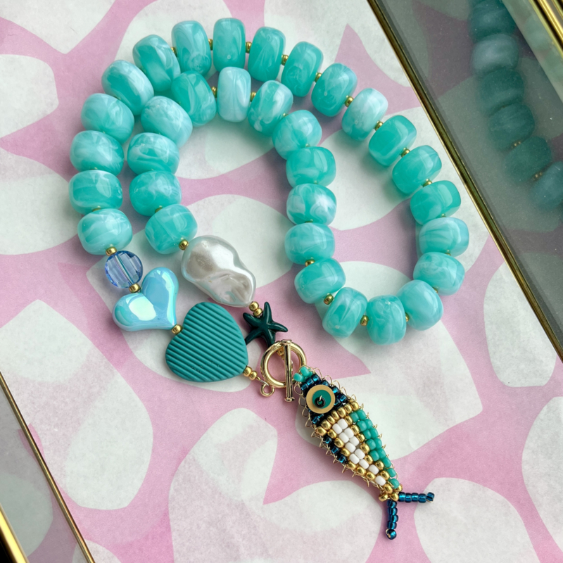 Combinatie tip! We hebben diverse trendy statement kettingen gemaakt die perfect bij de kralenvisjes passen. Hang ze met een ringetje 7mm aan het slotje en je heb een super toffe bedel. Complimenten gegarandeerd!